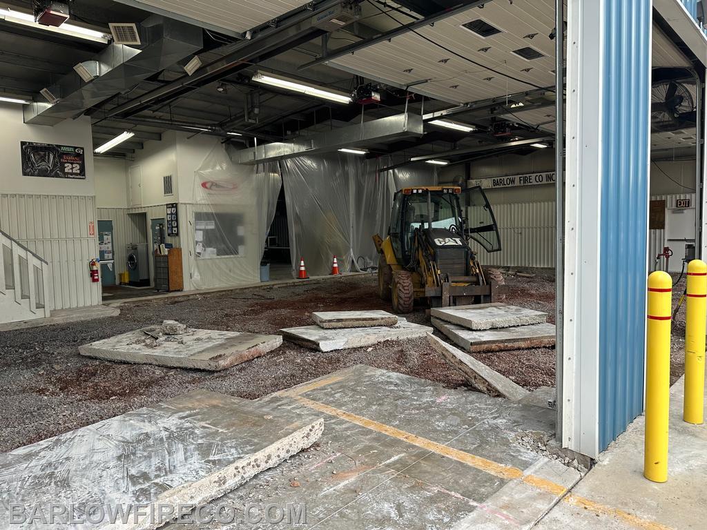 The engine bay floors in our station were starting to crack pretty bad so we had discussed having the ground down and expoxy sealed. In the end the main concern was that the base under the floors had been compromised or was not stable enough to withstand the weight of the new apparatus. So new concrete it is. Thanks to the help of Viersma Excavating by end of week the project will be complete except for cure time.